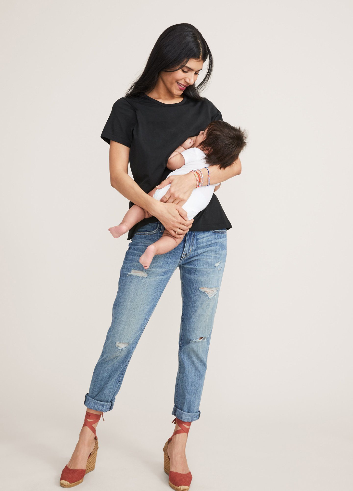 Your new-mom wardrobe calls for comfort, support, and versatility. You’ll want clothes that you can be cozy in around the house and are also cute for when you want to show baby around.