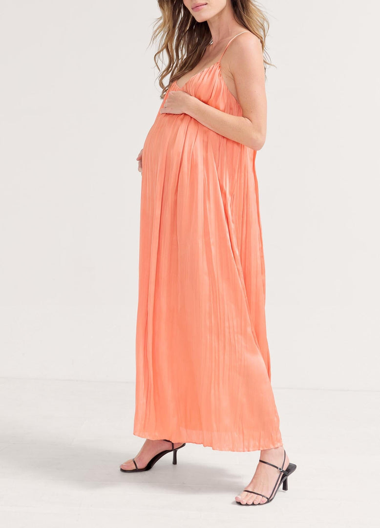 This summer we're romancing easy-breezy beach days and after-dark affairs- enter the Cornelia dress. Designed for effortless wear, it features free-flowing, silky pleats that drape gracefully over the bump, along with delicate adjustable spaghetti straps and a criss-cross back. Wear to the beach. Then to to dinner out. Then back to the beach.